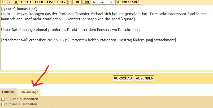 Hallo.....ich wollte sagen das der Professor Tronnier Michael sich bei mir gemeldet hat .Er es sehr interessant fand.leider kann ich den Brief nicht draufladen.... könntet ihr sagen wie das geht!